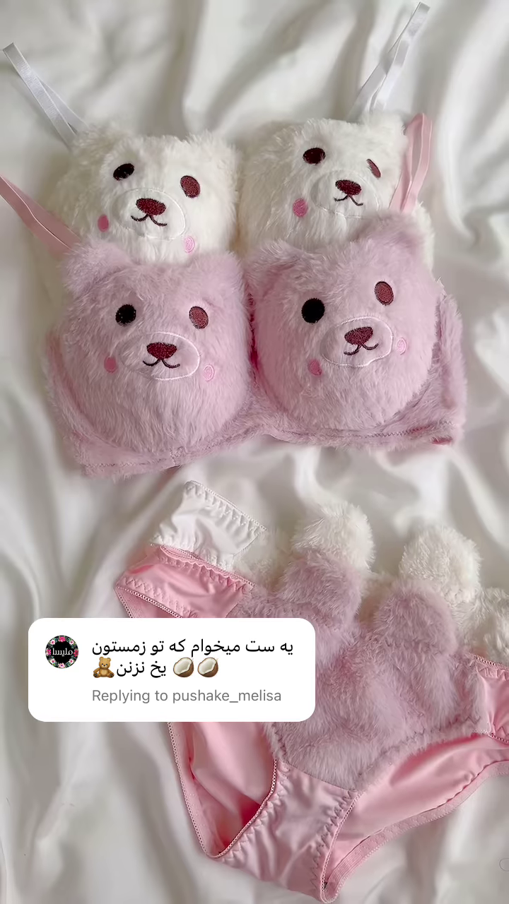 Embrace your playful side with this adorable fuzzy bear lingerie set. This charming set features a soft, plush material designed to resemble cute teddy bears, bringing a touch of whimsy and fun to your intimate apparel collection. The set includes a bra and matching bottoms, both crafted with comfort and style in mind.