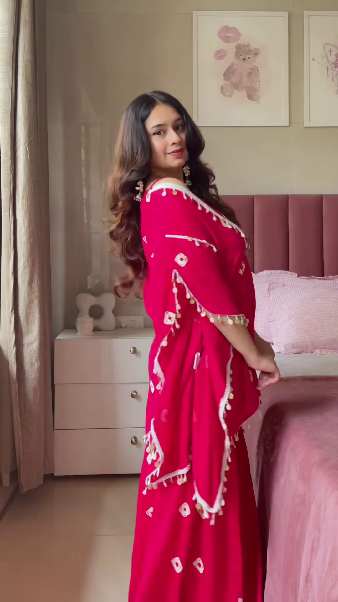 – Add a silver jhumka or oxidized earrings for a boho touch