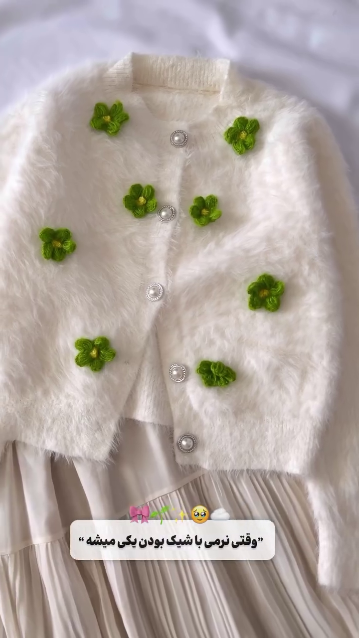 Stay warm and stylish with this adorable fuzzy cardigan and skirt set! The white fur-textured cardigan features delicate purple flower embroidery and pearl buttons, paired with a flowing lavender pleated skirt for a dreamy winter look. Perfect for brunch dates, cozy evenings, or your next aesthetic photoshoot.