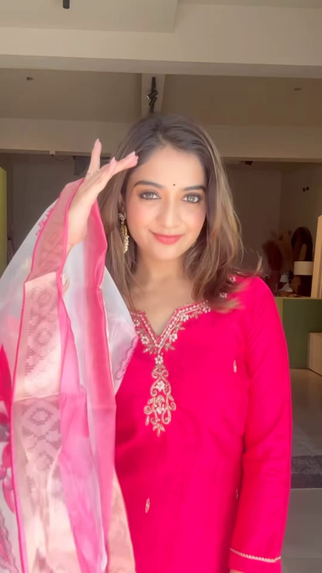 Accompanying the kurti is a contrasting dupatta, which adds a pop of color and visual interest to the ensemble. In the image, the dupatta appears to be a lightweight fabric with a soft, possibly watercolor-style floral print in shades of pink, creating a beautiful contrast against the off-white kurti. The dupatta adds a touch of vibrancy and femininity to the outfit and can be draped in various elegant ways, enhancing the overall style and versatility of the set, perfect for showcasing your personal touch in Ahmedabad.