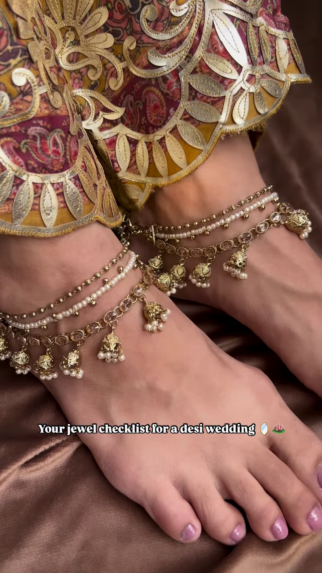 Embrace the radiant spirit of celebration with this exquisite pair of gold-toned multi-tiered hanging adornments, a truly magnificent accessory designed to cascade elegantly from the wrist, bringing traditional grandeur and captivating movement to any significant occasion. These elaborate pieces, often seen as a cherished part of bridal attire, are meticulously crafted with a rich array of gold-toned elements, shimmering beads, and delicate leaf-shaped accents, creating a breathtaking display of traditional artistry and festive charm.