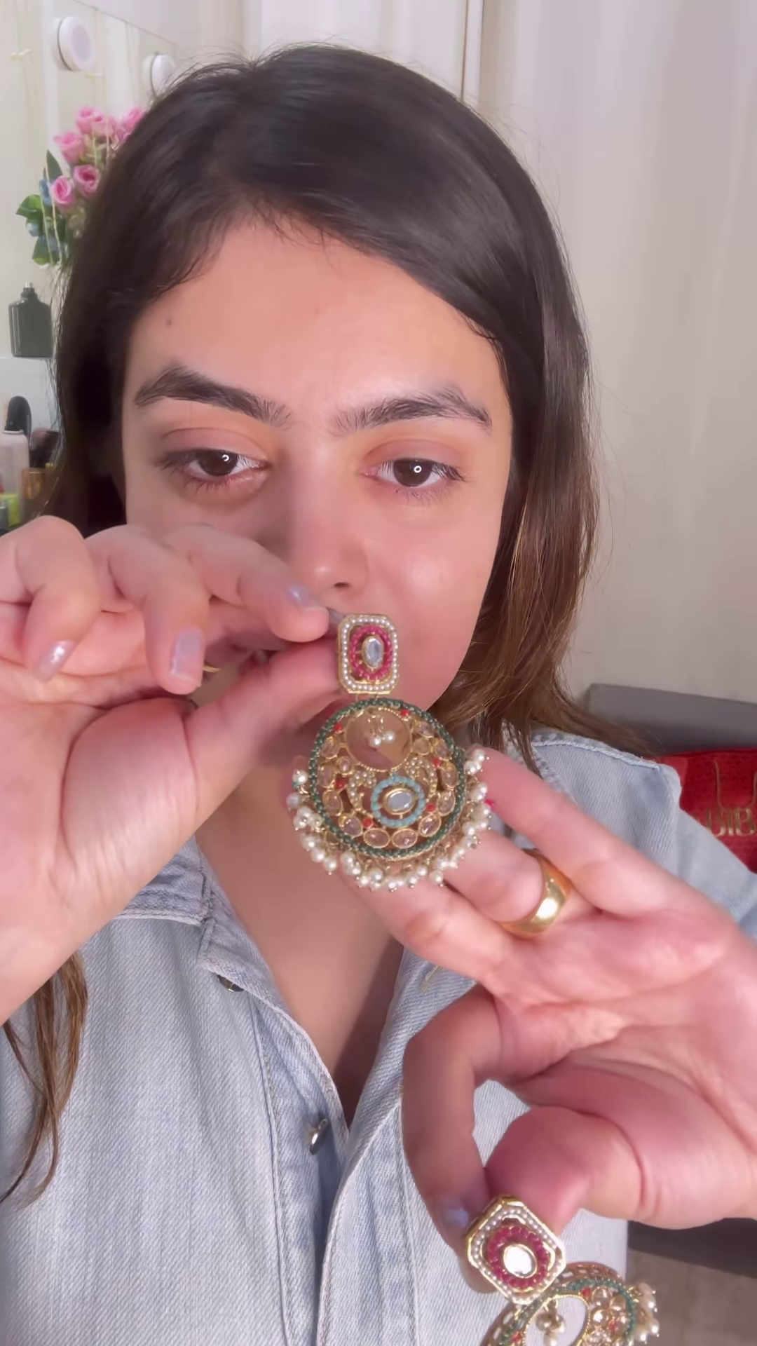 This exquisite Kundan choker necklace with its intricate detailing and pearl drops is a testament to traditional jewelry artistry. Its opulent design and high-quality craftsmanship make it a perfect accessory for brides or anyone looking to make a grand and elegant statement at a special occasion.
