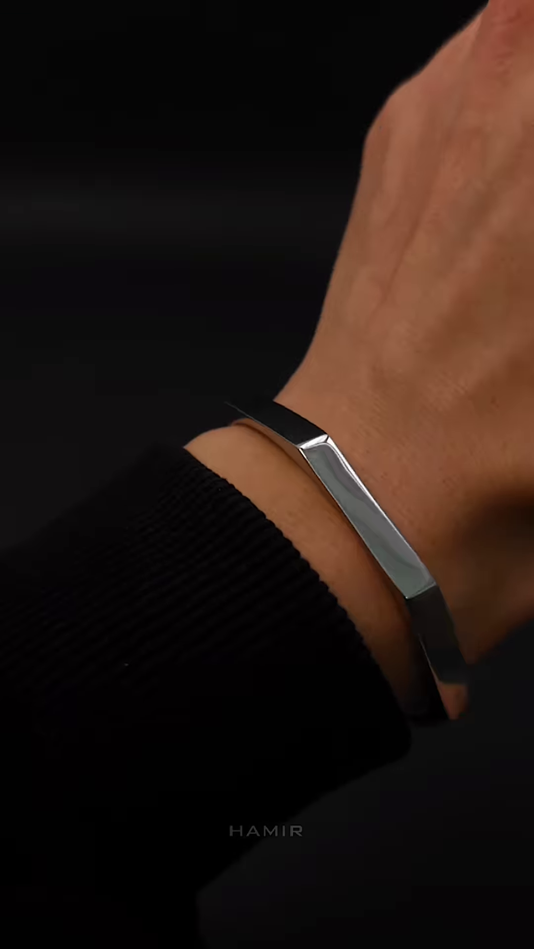 Embrace the understated elegance of this modern sleek silver bangle bracelet and elevate your personal style with its timeless appeal and contemporary design.