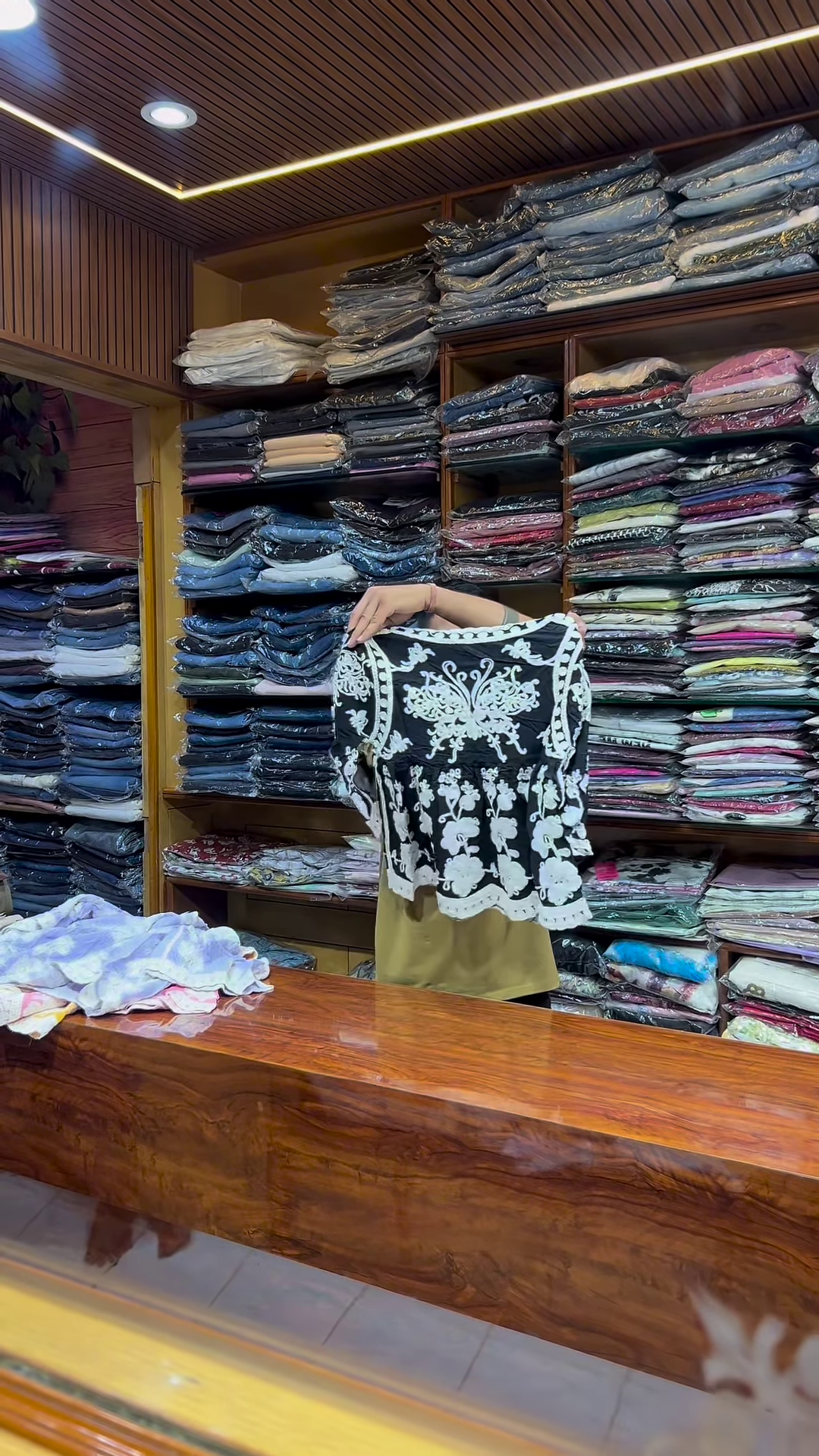 Crafted from lightweight, breathable fabric, the top ensures comfort throughout the day. The material appears soft to the touch, with a gentle drape that complements the embroidery and tailored fit. It’s ideal for warm climates, indoor wear, or layered styling during transitional seasons.