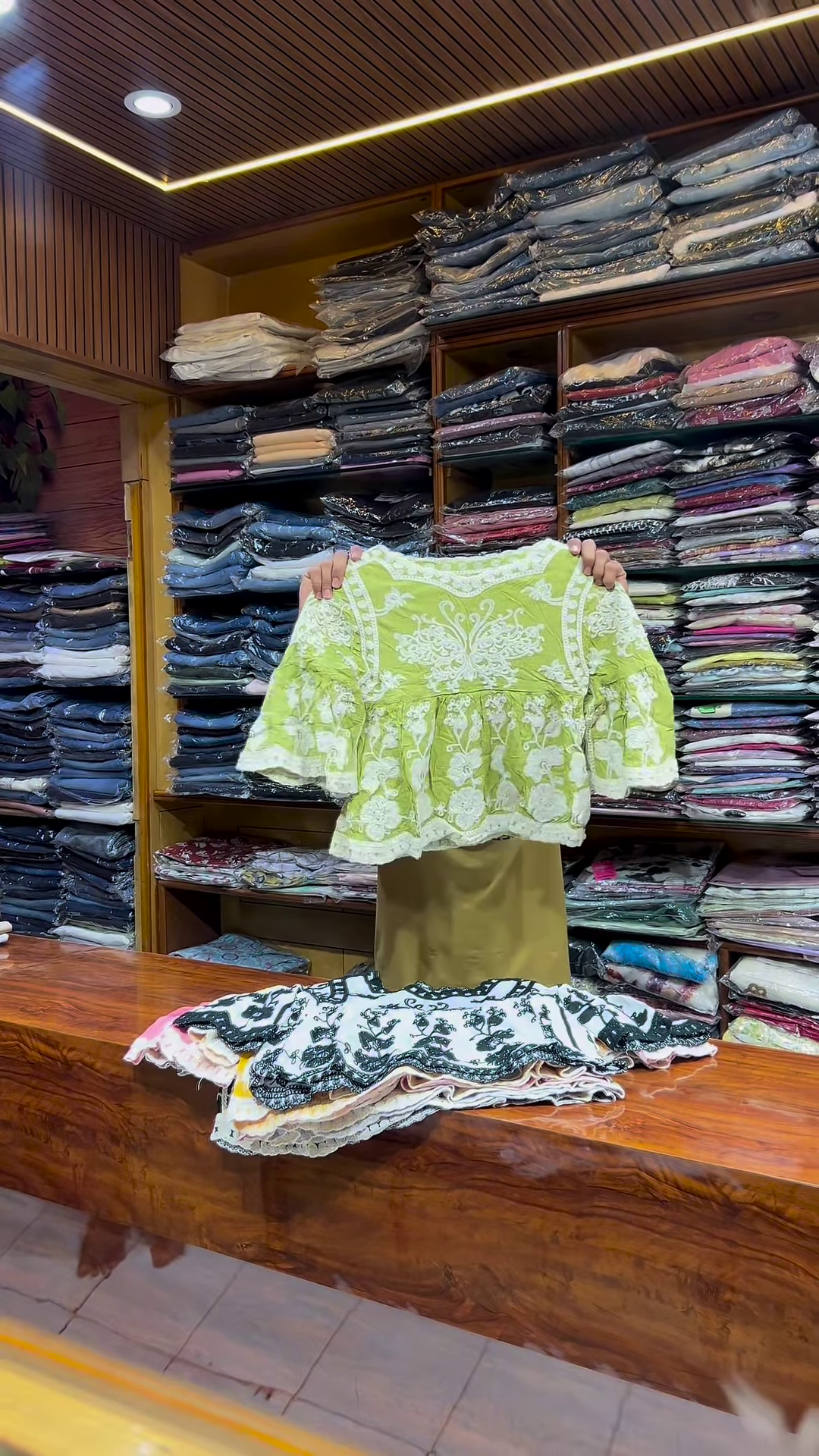 Add a soft and elegant touch to your ethnicwear or fusion collection with this pink and white embroidered long-sleeve top, designed for women who appreciate delicate craftsmanship and versatile styling. With its modest silhouette and intricate front detailing, this garment is ideal for boutique displays, festive catalogs, and everyday fashion campaigns.