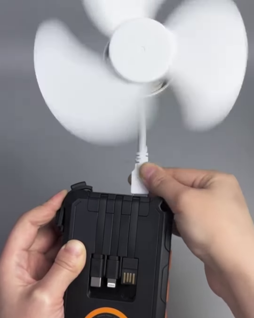 In conclusion, this rugged solar power bank with integrated charging cables offers a reliable and versatile power solution for outdoor enthusiasts, travelers, and anyone seeking a dependable backup power source. Its durable construction, solar charging capability, and integrated cables provide convenience and peace of mind, ensuring your devices stay powered up wherever you go.