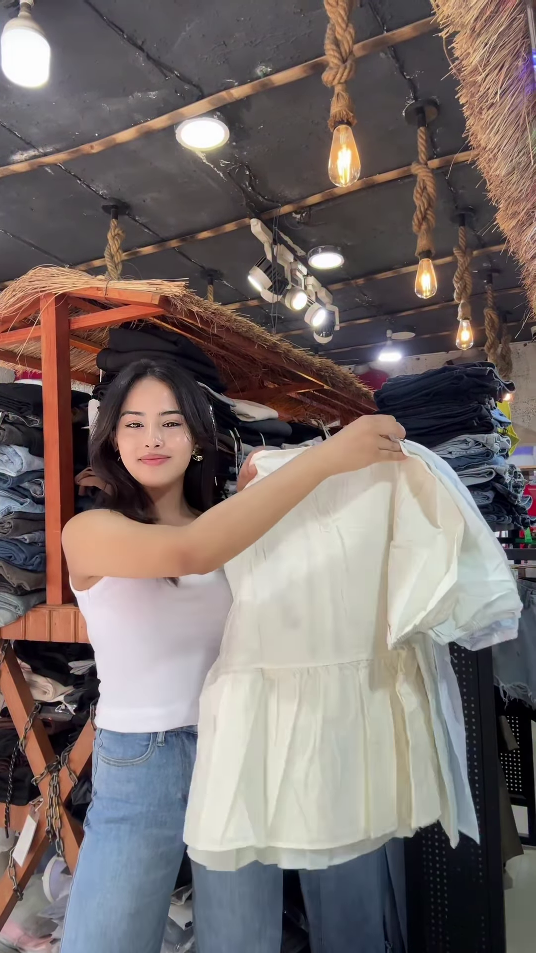 Step into effortless style with this white floral embroidered blouse paired with light blue jeans, designed for women who appreciate soft textures, artisanal detailing, and relaxed elegance. Captured in a cozy, rustic boutique setting, this outfit blends everyday comfort with catalog-worthy charm—perfect for lifestyle shoots, WhatsApp fashion drops, or storefront styling.